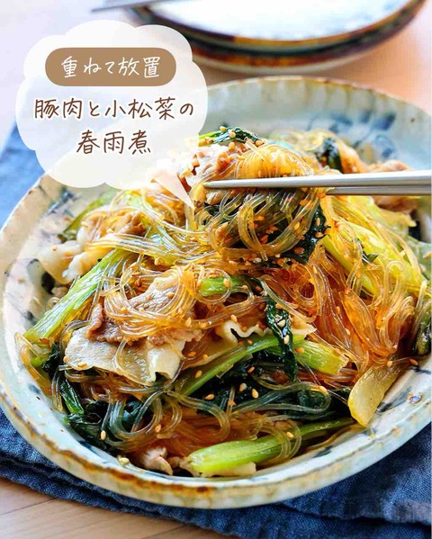 ♡重ねて放置!豚肉と小松菜の春雨煮♡【#簡単レシピ #時短 #節約 #ほったらかし料理 #フライパン蒸し 】 2025年11月20日 ⭐️新刊発売中⭐️肉や魚のメインおかずはもちろん副菜、丼、麺、スープ、お菓子ハレの日レシピに加え、蒸籠やお弁当米粉のおやつもこの一冊で完結💕今日のごはんこれに決まり!Mizukiのレシピノート2!600品Amazon 楽天ブックスおはようございます☺️今日 ... 続きを読む
