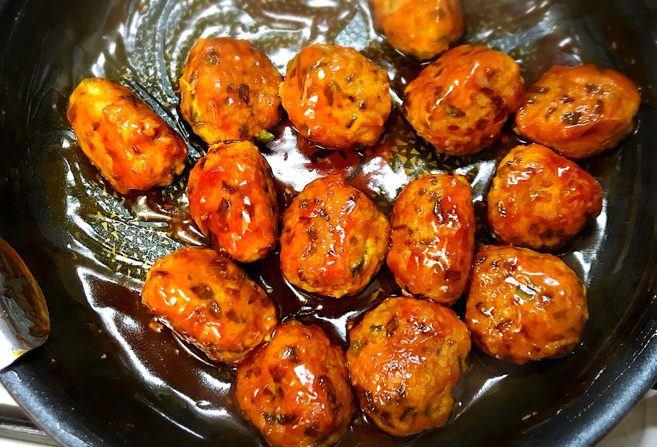 ピーマン肉団子のケチャップあん