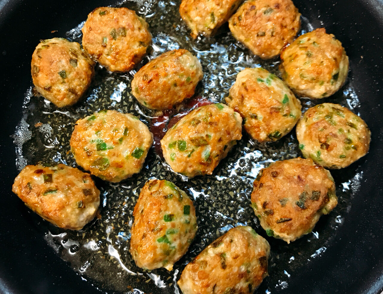 2.サラダ油を中火で熱したフライパンに肉だねを入れ、ときどき転がしながら焼く。火が通ったらフライパンに残った油を拭き取る。
