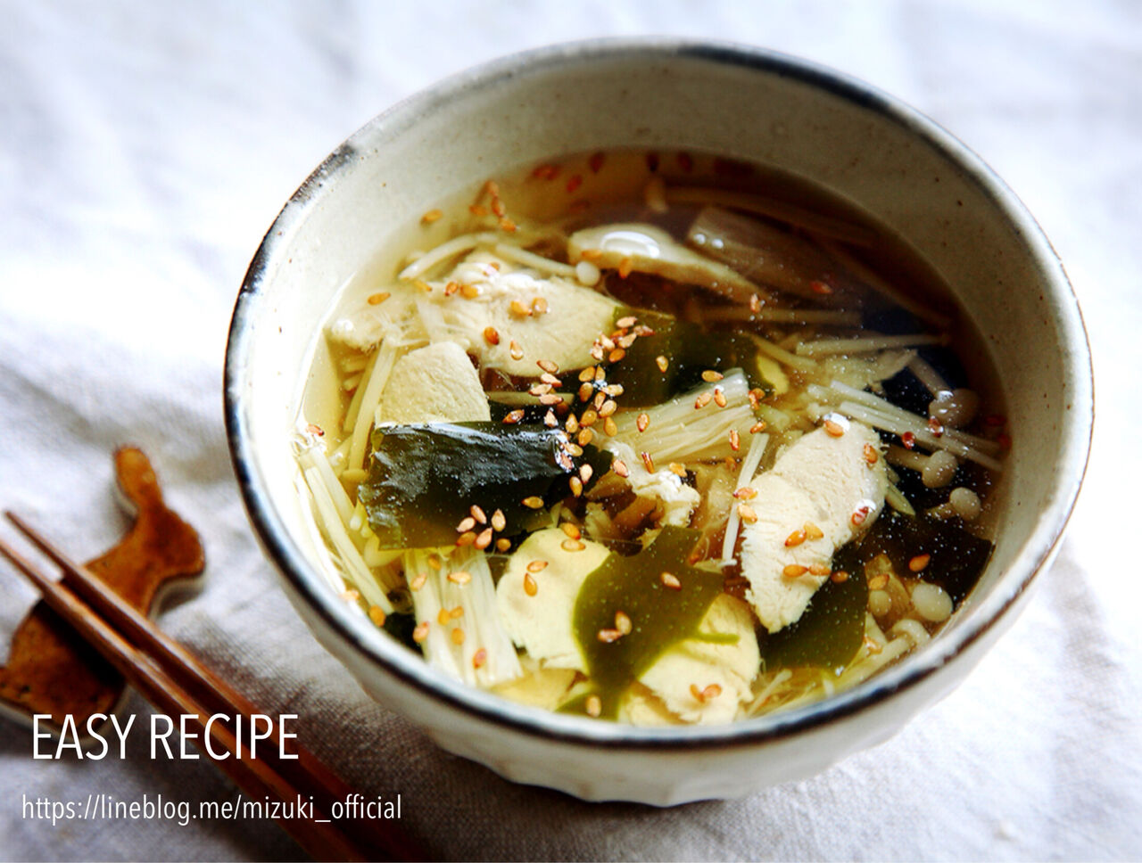 2.鍋に●とささみを入れ、混ぜてから火にかける。沸騰したらアクを除き、えのきとわかめを加えて弱火で3分煮る。