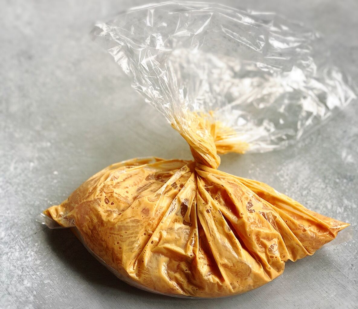 2.ポリ袋に1と●を入れ、50回以上揉む。