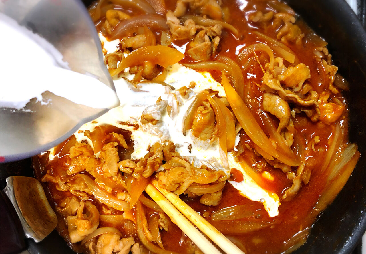 3.仕上げに生クリーム(又は牛乳)を加えて混ぜ、沸騰直前で火を止める。