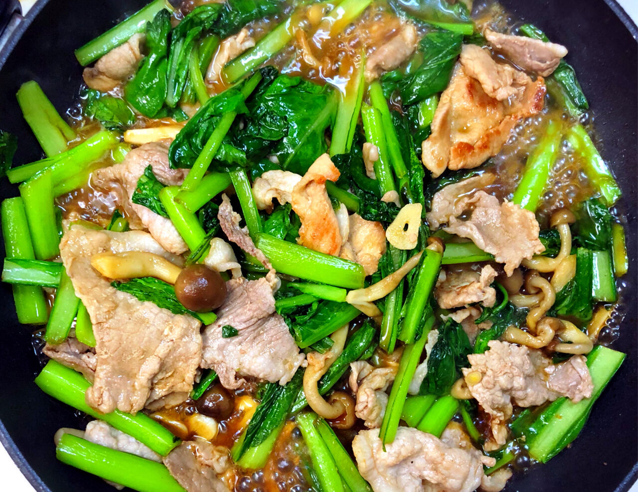 3.小松菜がしんなりしたら●を加えて煮からめる。