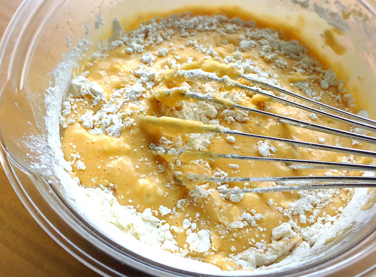 3.☆を加え、粉っぽさがなくなる程度に混ぜる。(混ぜ過ぎないように☆)