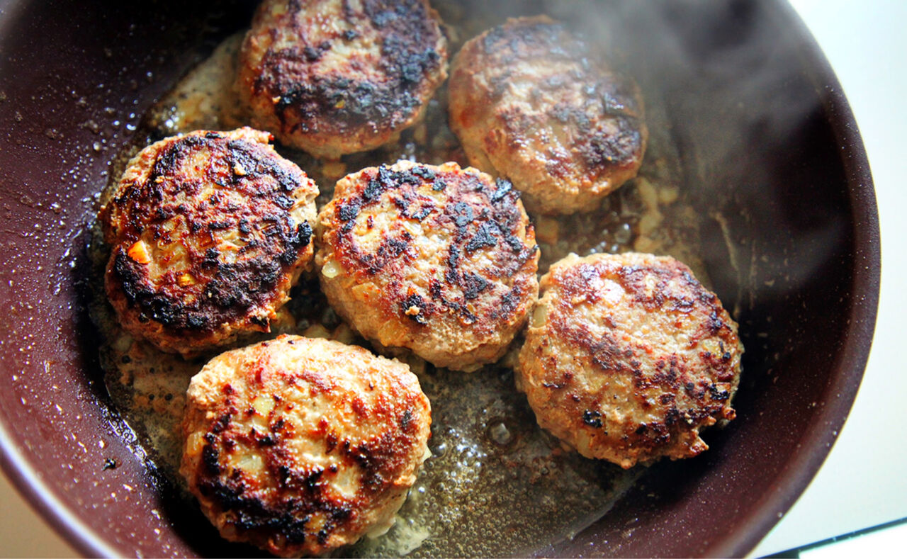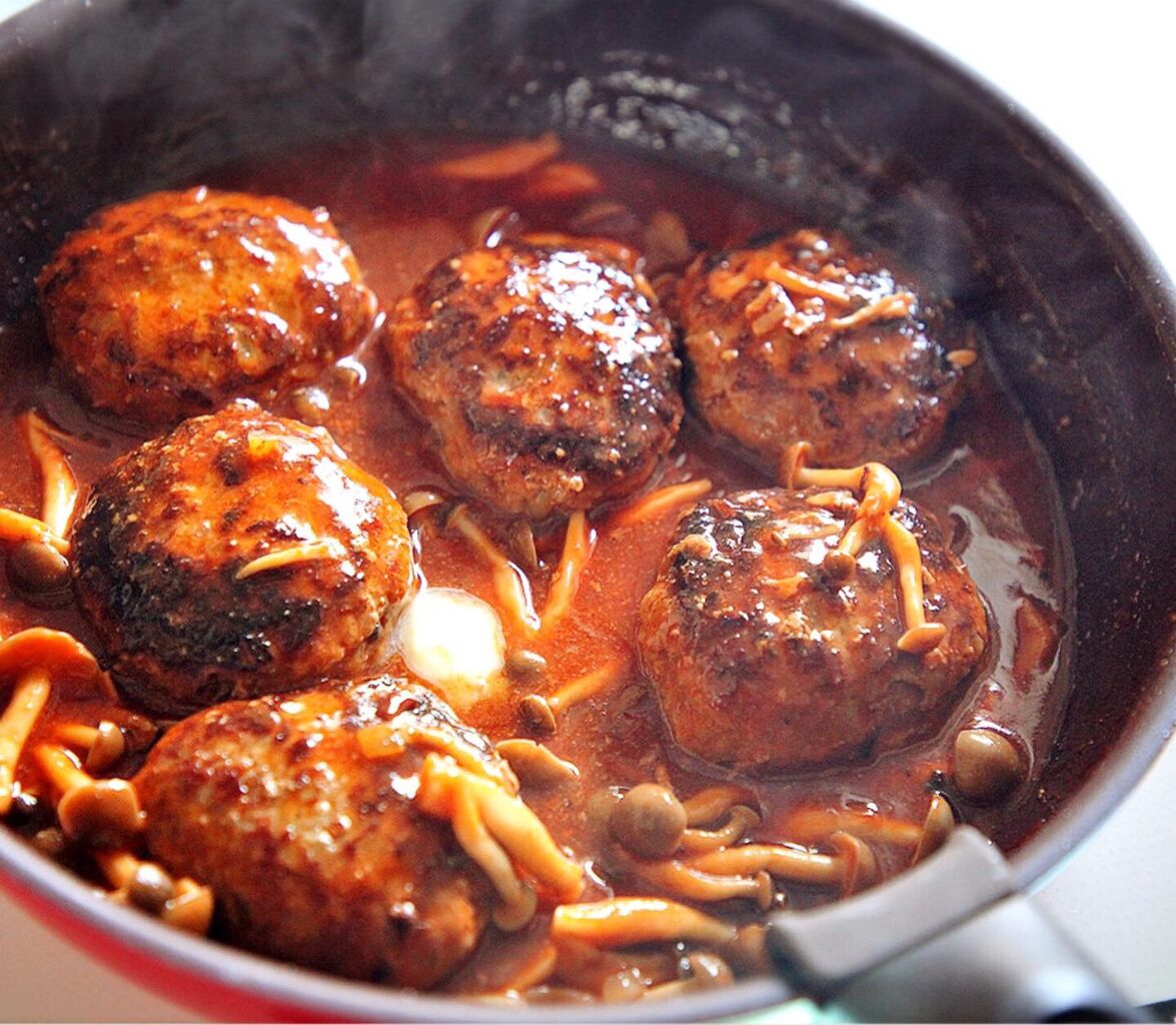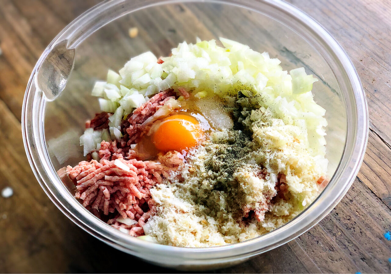 1.ボウルに●を入れてよく混ぜ、6等分の小判形にする。