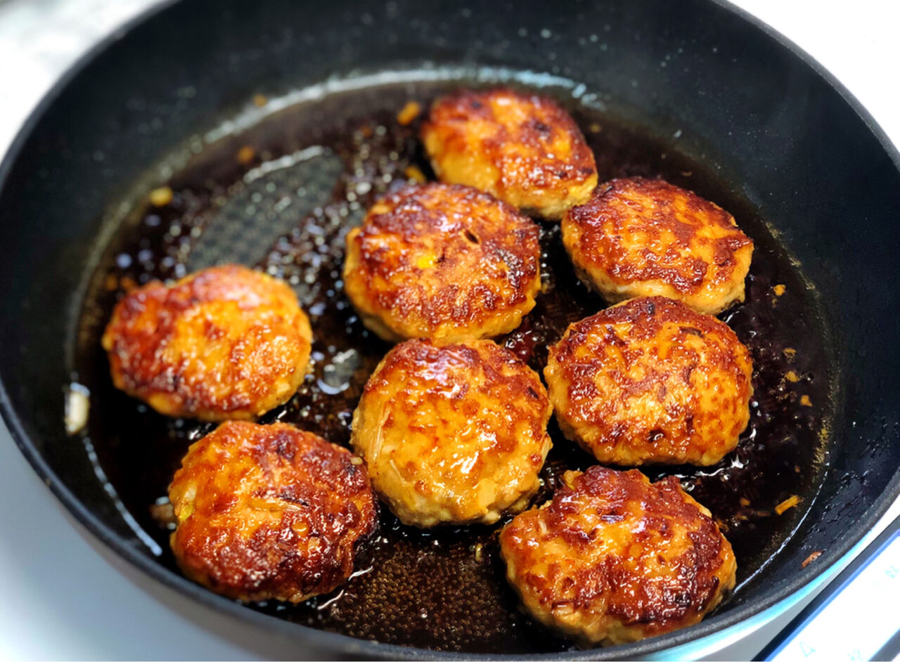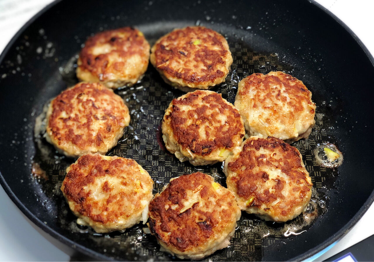 2.ごま油を中火で熱したフライパンで1を焼く。こんがりしたら裏返してフタをし、弱めの中火で3分蒸し焼きにする。