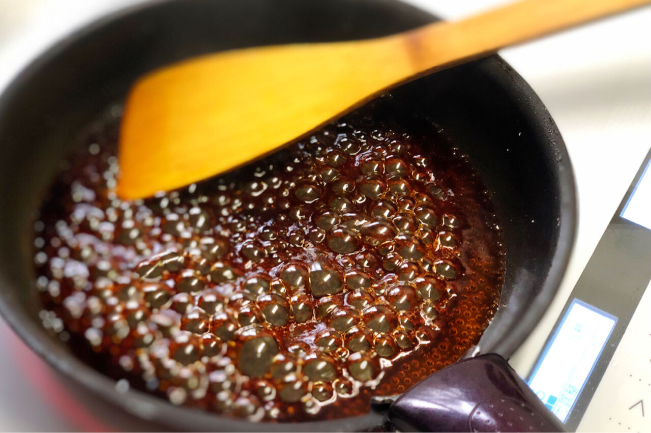 3.フライパンをさっと綺麗にし、●を入れて中火にかける。混ぜながら加熱し、たれにとろみがついたら2を戻し入れてからめる。