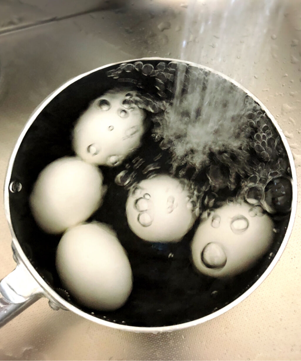 卵を水から茹でたり