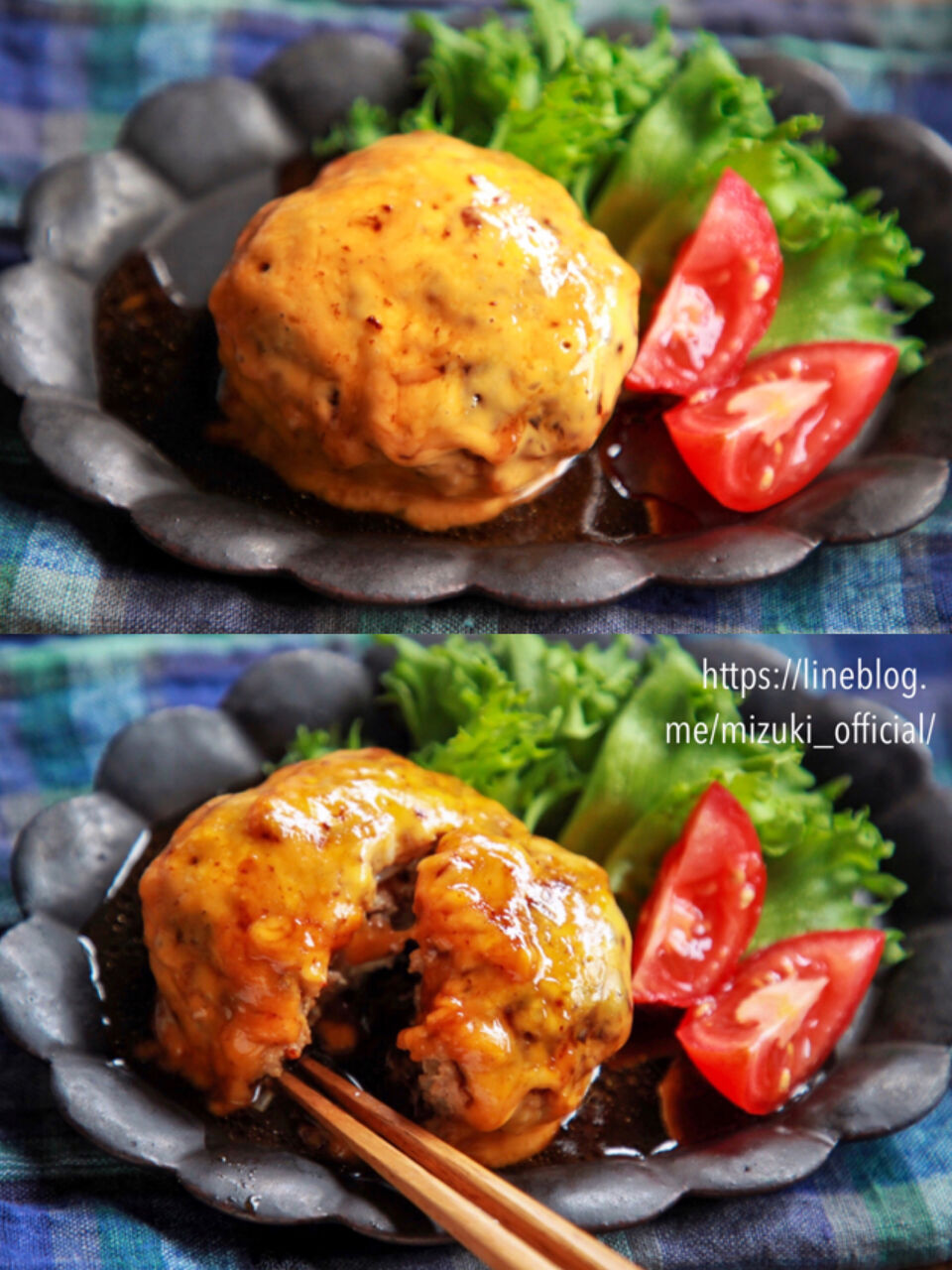 1.ボウルに●を入れてよく混ぜ、2等分の小判形にする。☆は合わせておく。