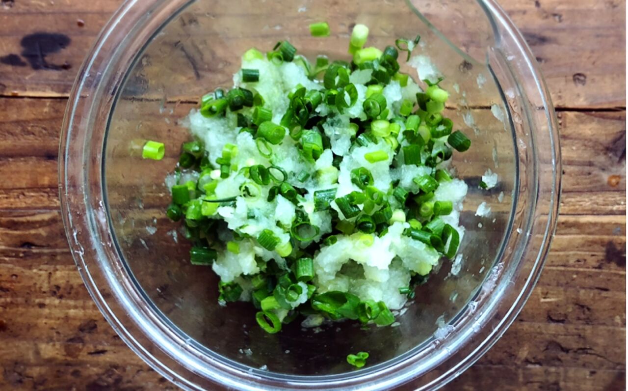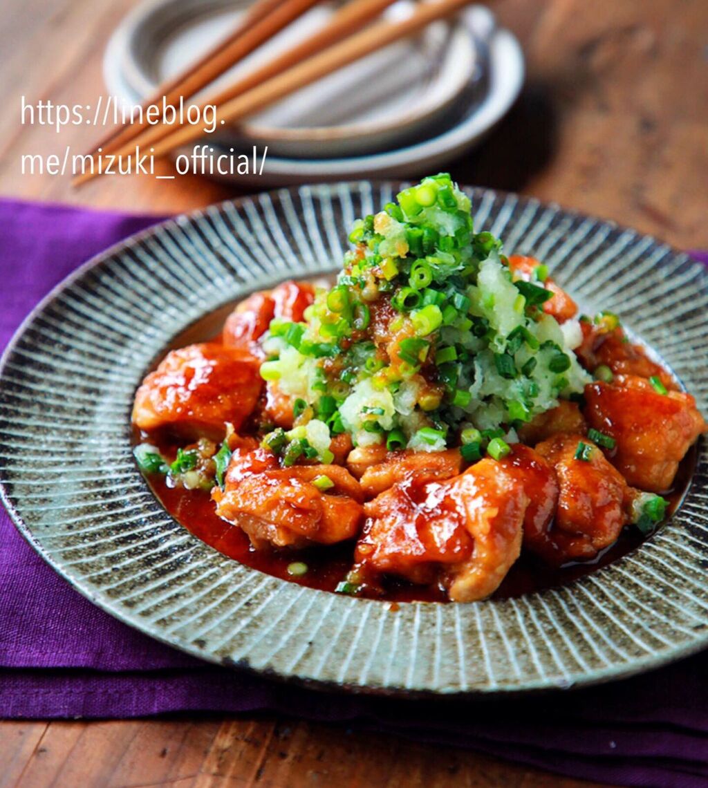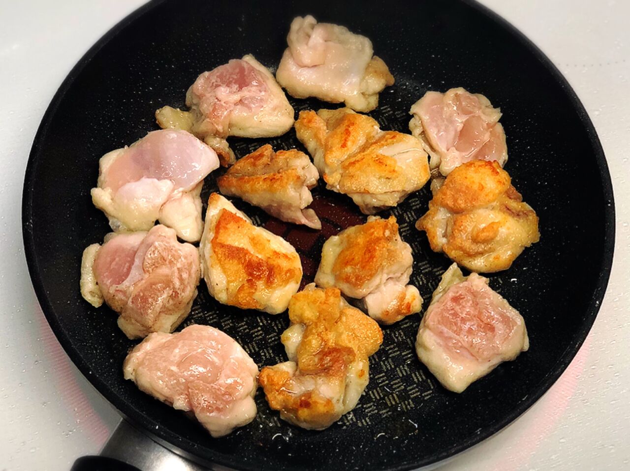1.ねぎは小口切りにする。大根はすりおろしてねぎと混ぜておく(←ねぎおろし)。鶏肉は3cm大に切り、塩こしょうを振って薄力粉をまぶす。●は合わせておく。