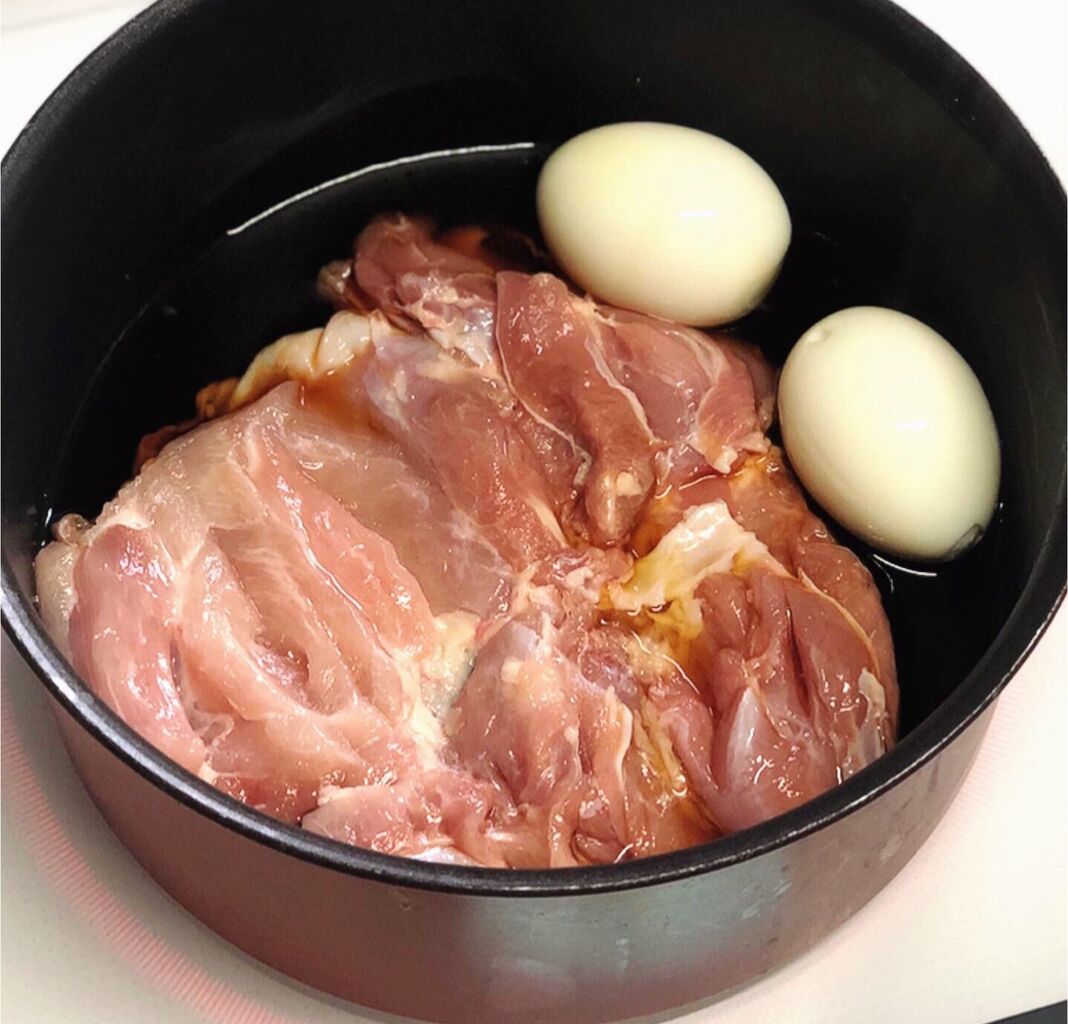 ♦︎煮汁が多めに残る(より照りを出したい)場合は、鶏肉とたまごを取り出した後煮汁だけを煮詰めて下さい♩