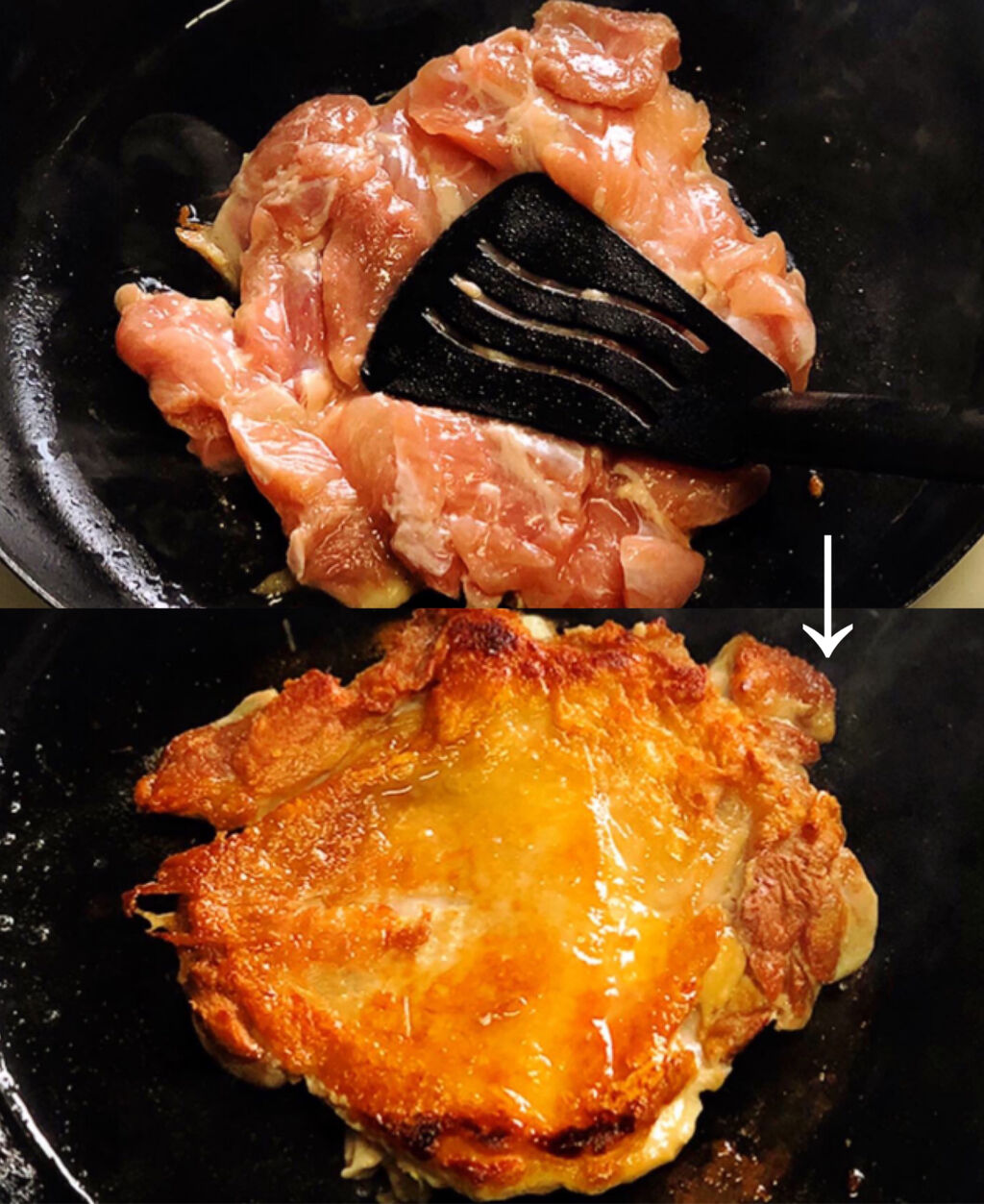 ♦︎鶏肉はしっかり焼き色がつくまでフライ返しで押さえながら焼いて下さいね♩