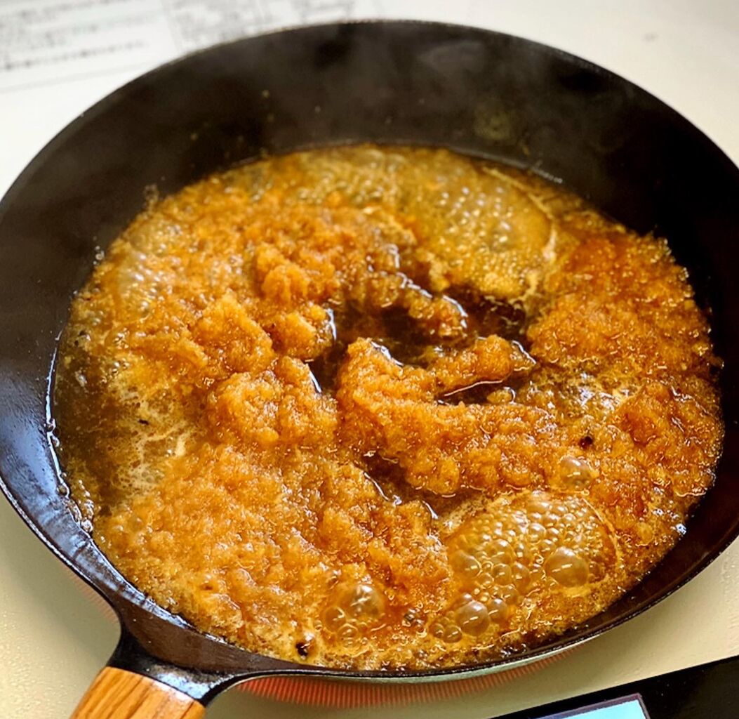♦︎フライパンにたくさん油が残っている場合は、軽く拭きとってからおろしだれを加えて下さい♩