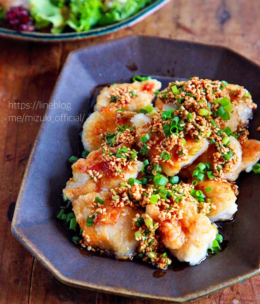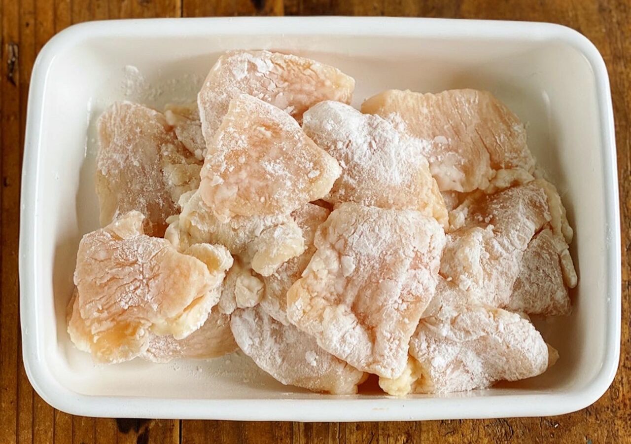 1.☆を合わせてたれを作っておく。鶏むね肉は全体をフォークで刺して1cm厚さの削ぎ切りにし、●を揉み込み、片栗粉をまぶす。