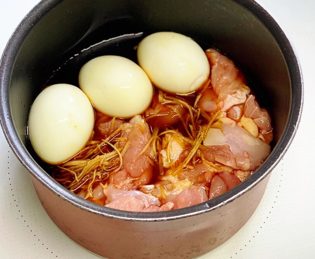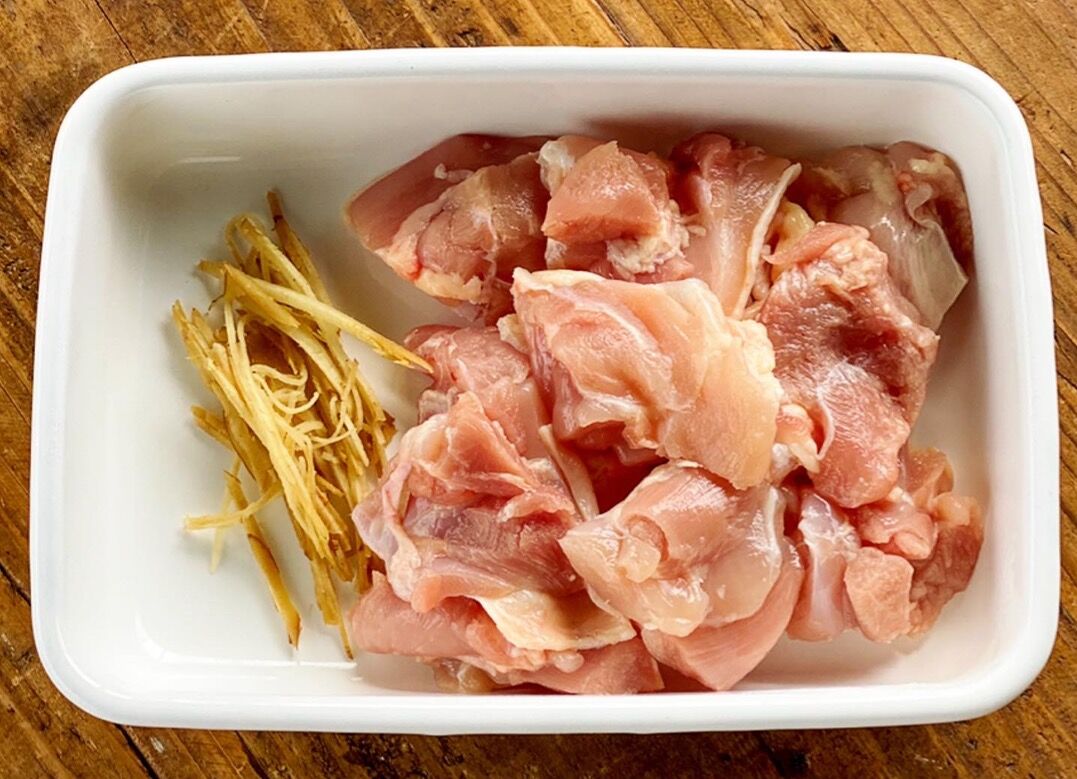 1.鶏肉は3cm大に切る。生姜は千切りにする。