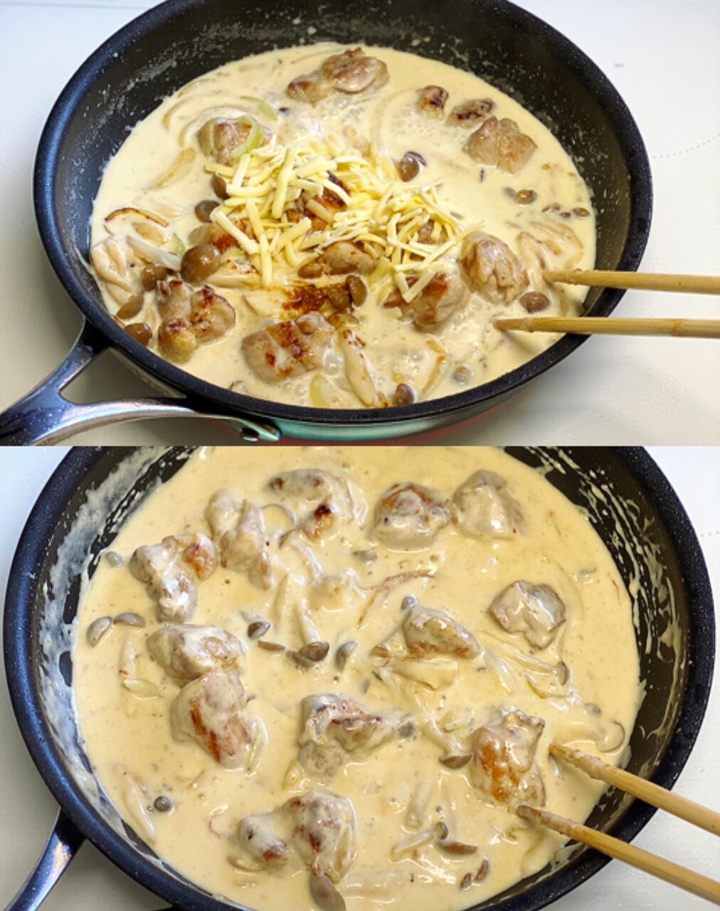 ♦︎チーズなしにすると普通のクリーム煮になります♩その場合コンソメを少し増やすか、塩少々を加えて味を調えて下さい♩