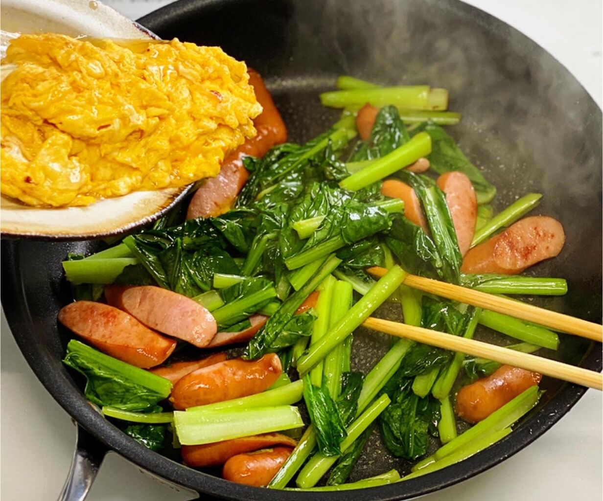 ウインナーと小松菜のふわたま炒め♩