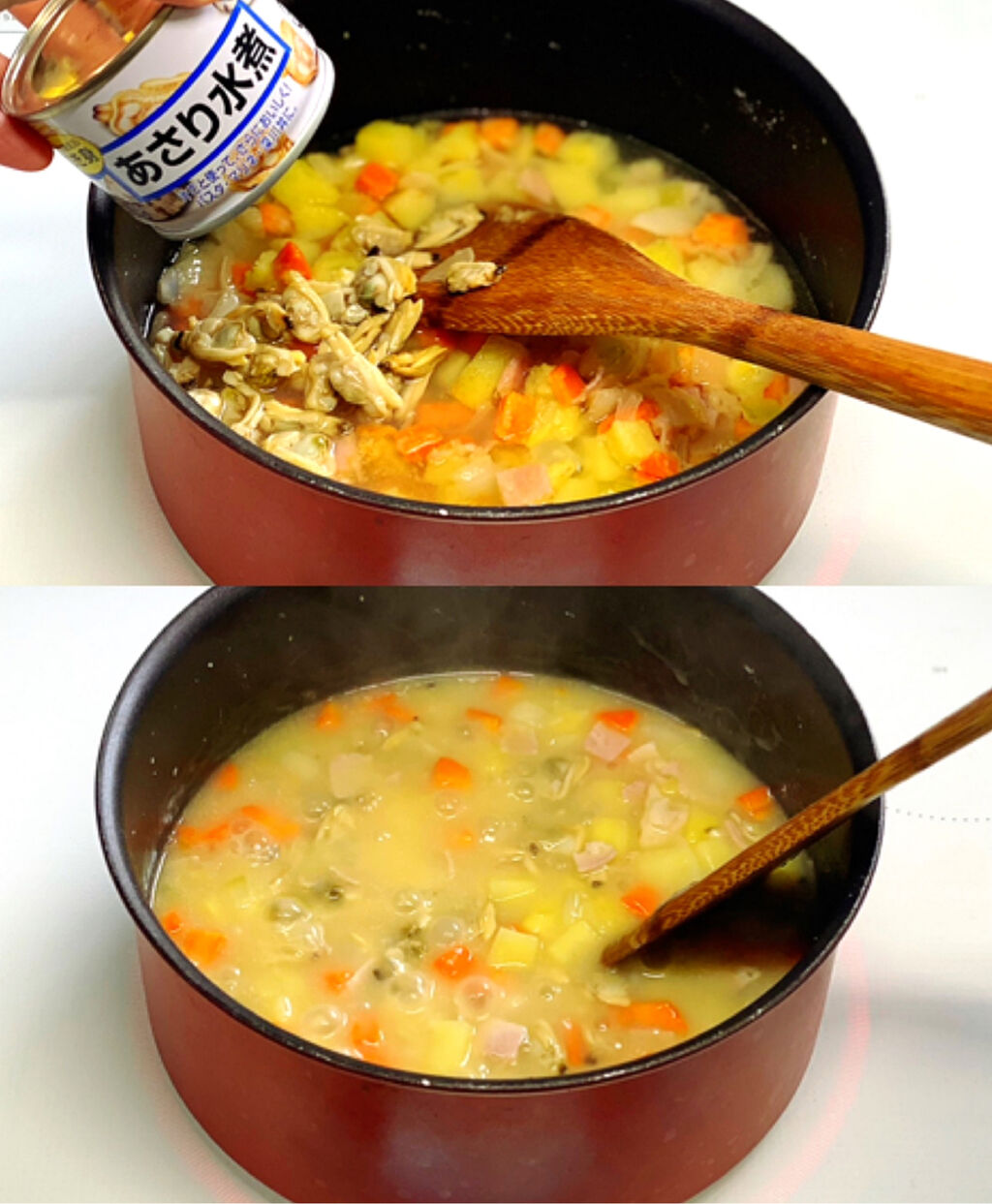 ♦︎あさり水煮缶は缶汁含めて130gのものを使用しました♩