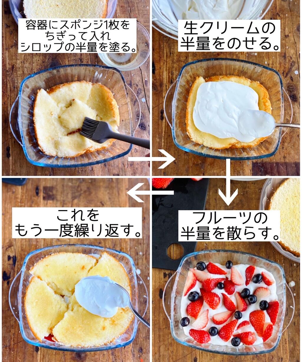 クリームとフルーツを重ねるだけで