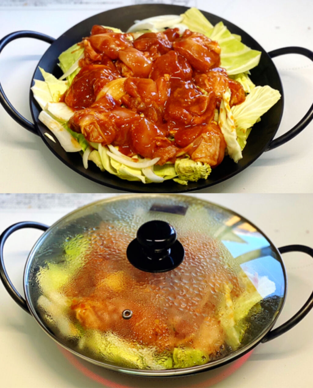 1.鶏肉は3cm大に切って●を揉み込む。キャベツはざく切りにする。玉ねぎは薄切りにする。