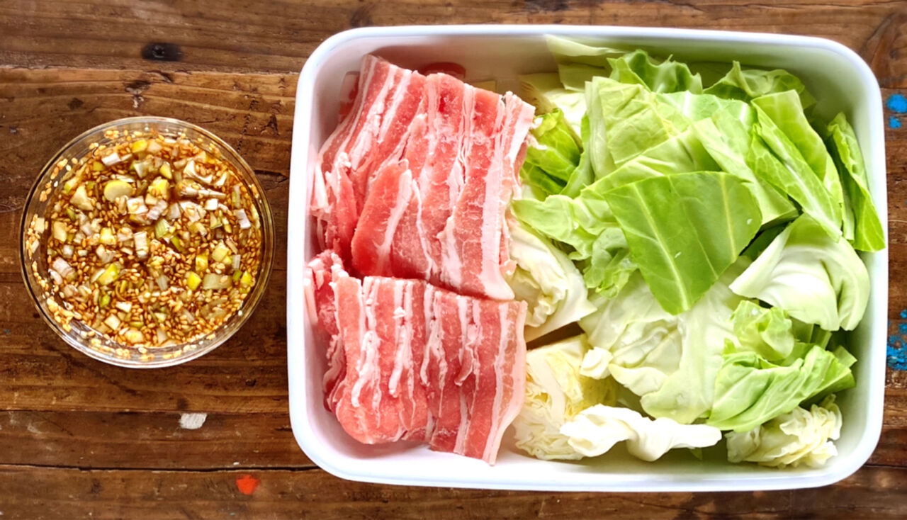 豚肉とキャベツの香味だれがけ