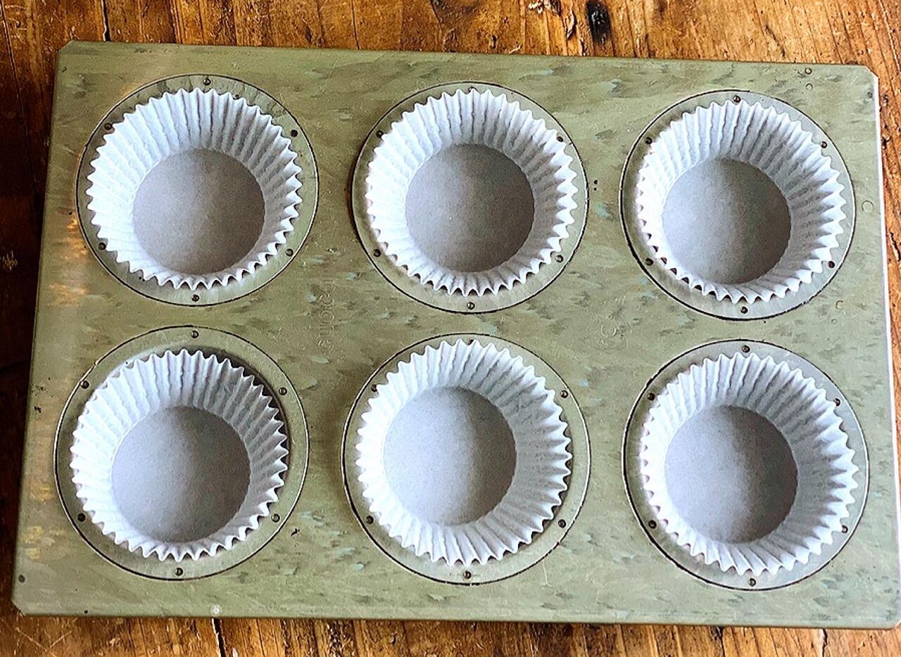 (準備)型にグラシンカップを敷く。オーブンを180度に予熱する。