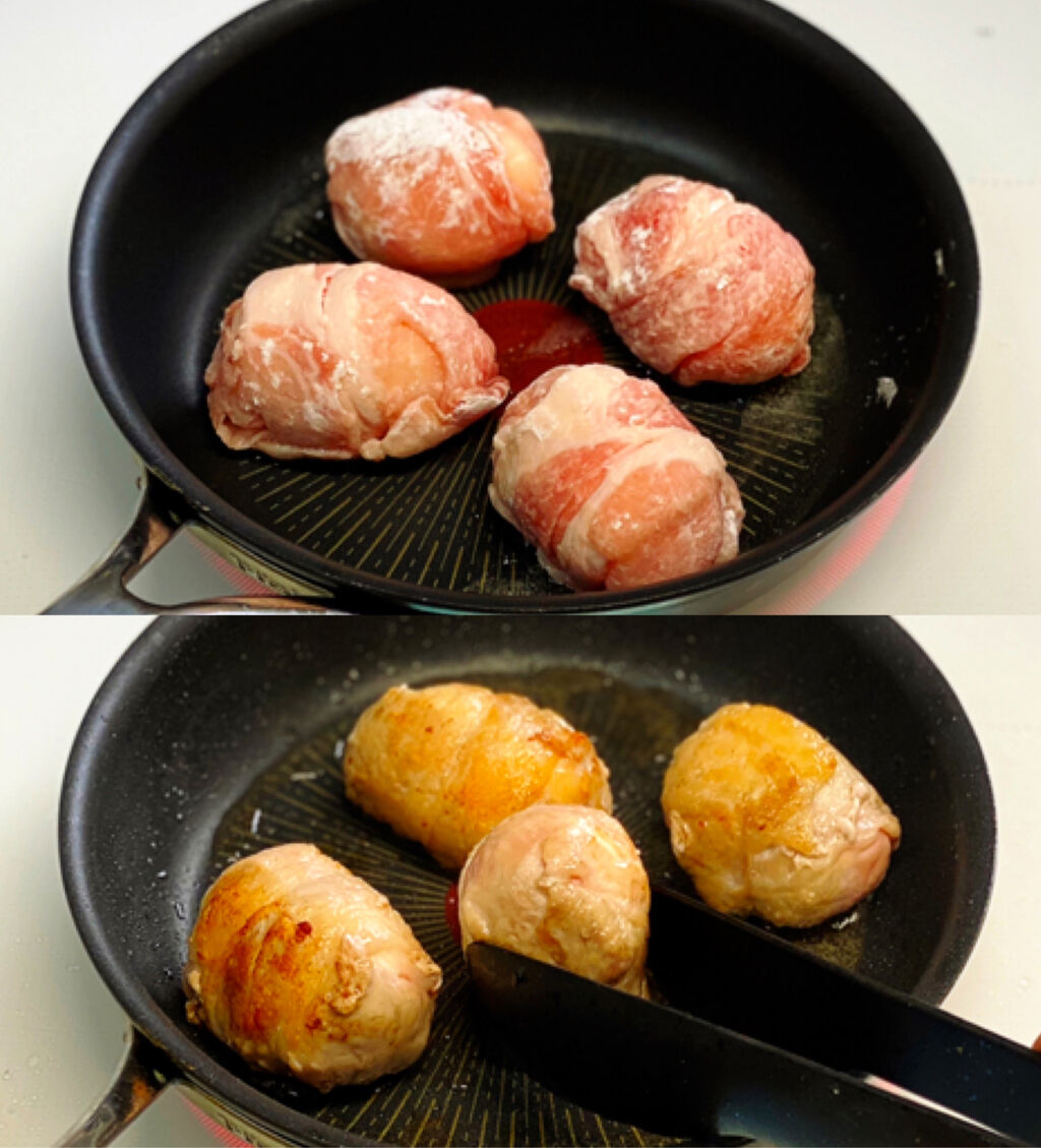 ゆで卵を丸ごと豚肉で巻いた