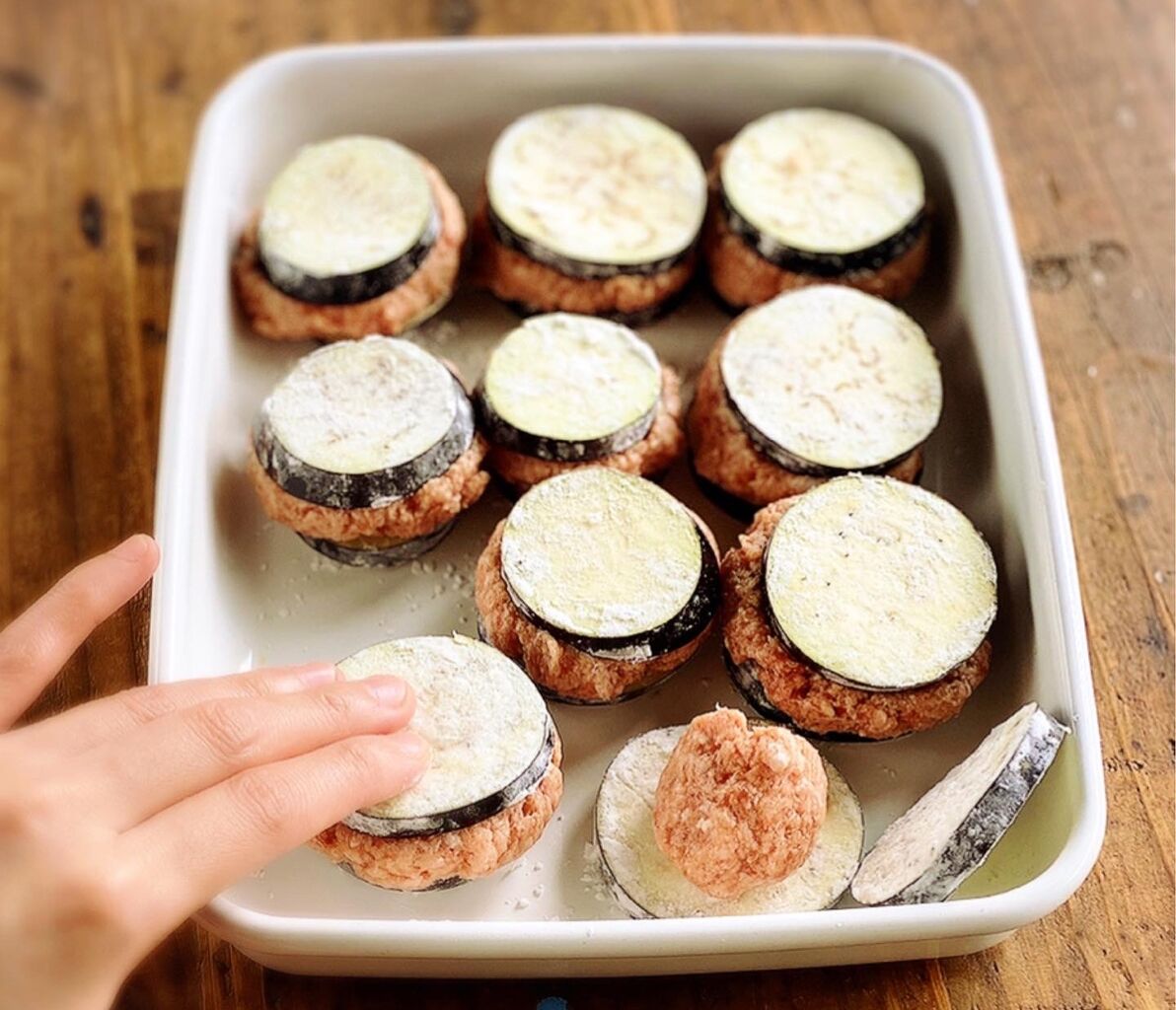 シンプルな肉だねをなすで挟んで