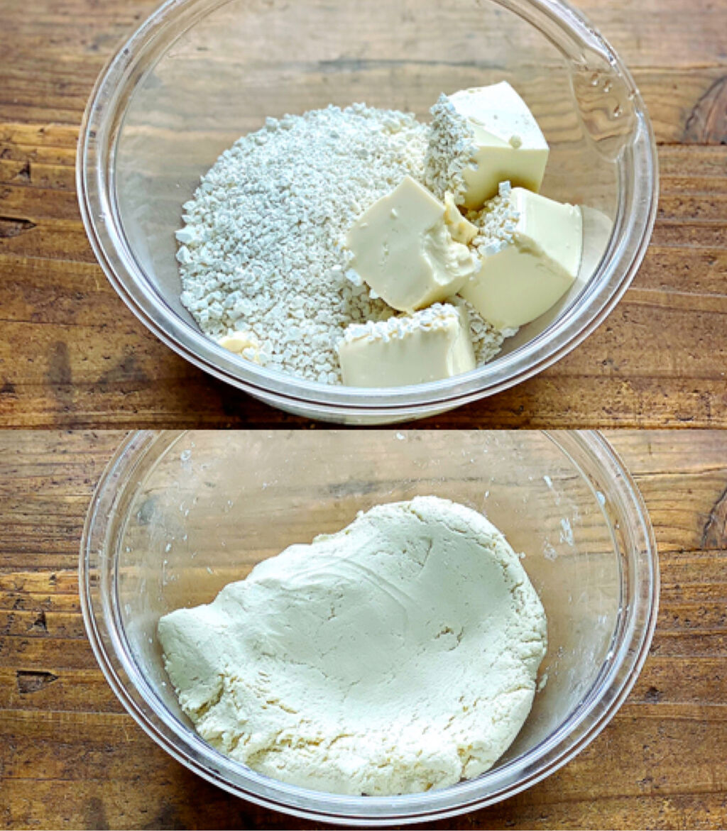 1.ボウルに白玉粉と豆腐を入れてよく混ぜる。水(分量外)を小1ずつ加えて更に混ぜ、耳たぶくらいの柔らかさにする(今回は大1強加えました♩)。