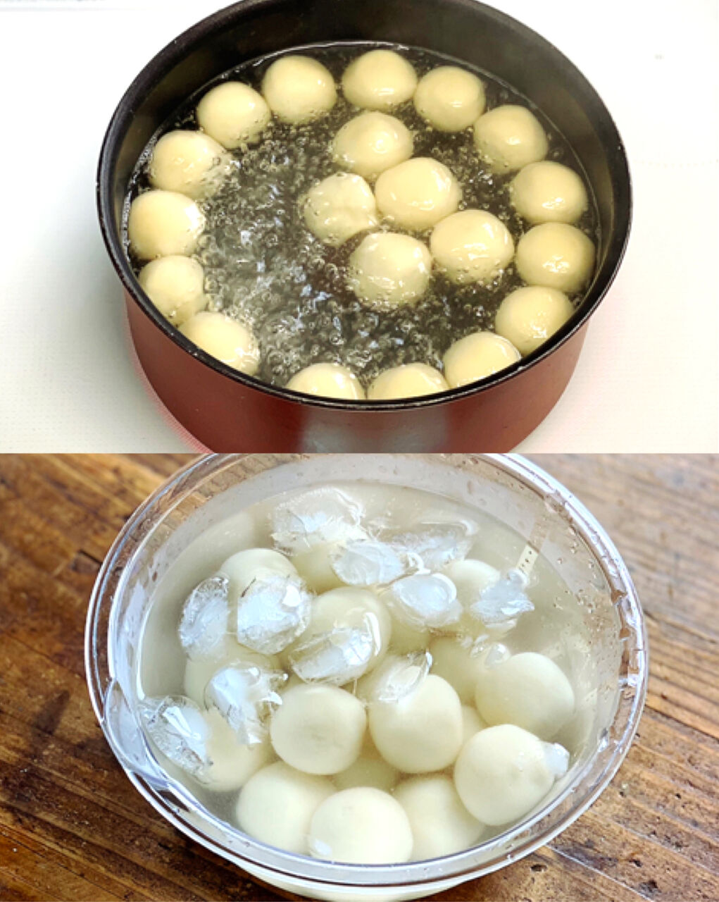 ♦︎白玉粉の種類により、加える水の量を調節して下さい☆丸めた時にヒビ割れない耳たぶくらいの柔らかさが目安です♩
