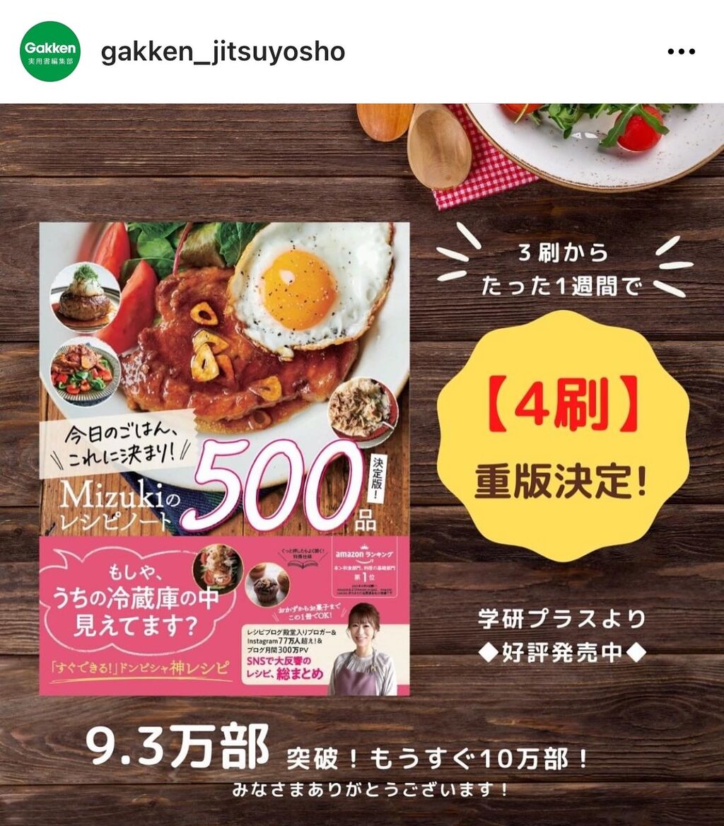 新刊【Mizukiのレシピノート 】も