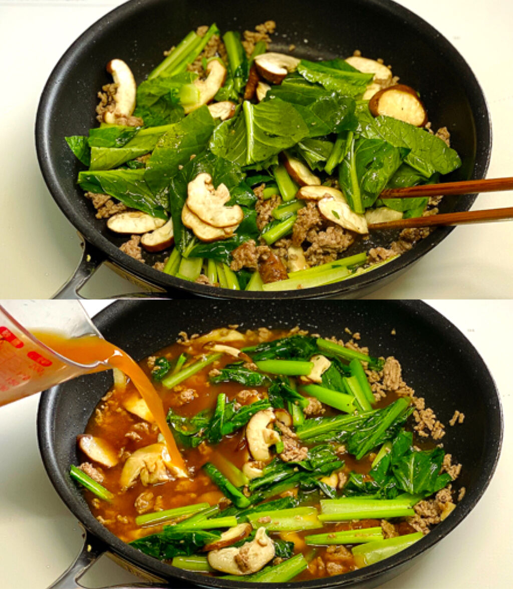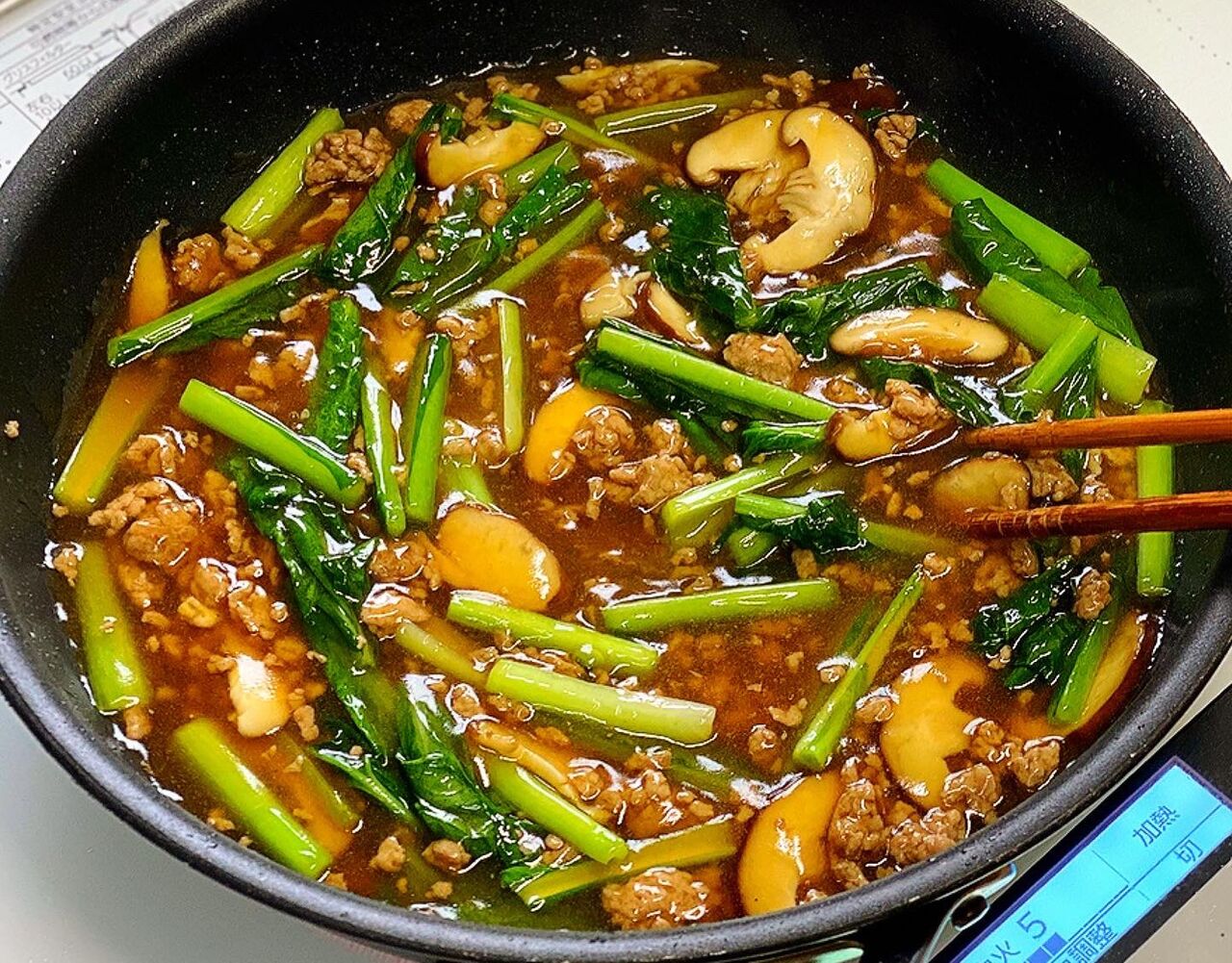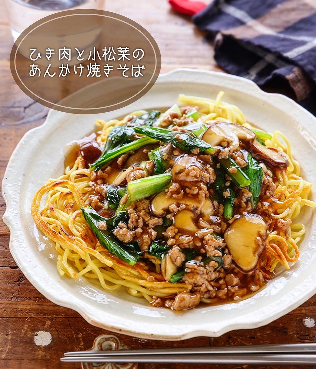 \ ひき肉と小松菜のあんかけ焼きそば /