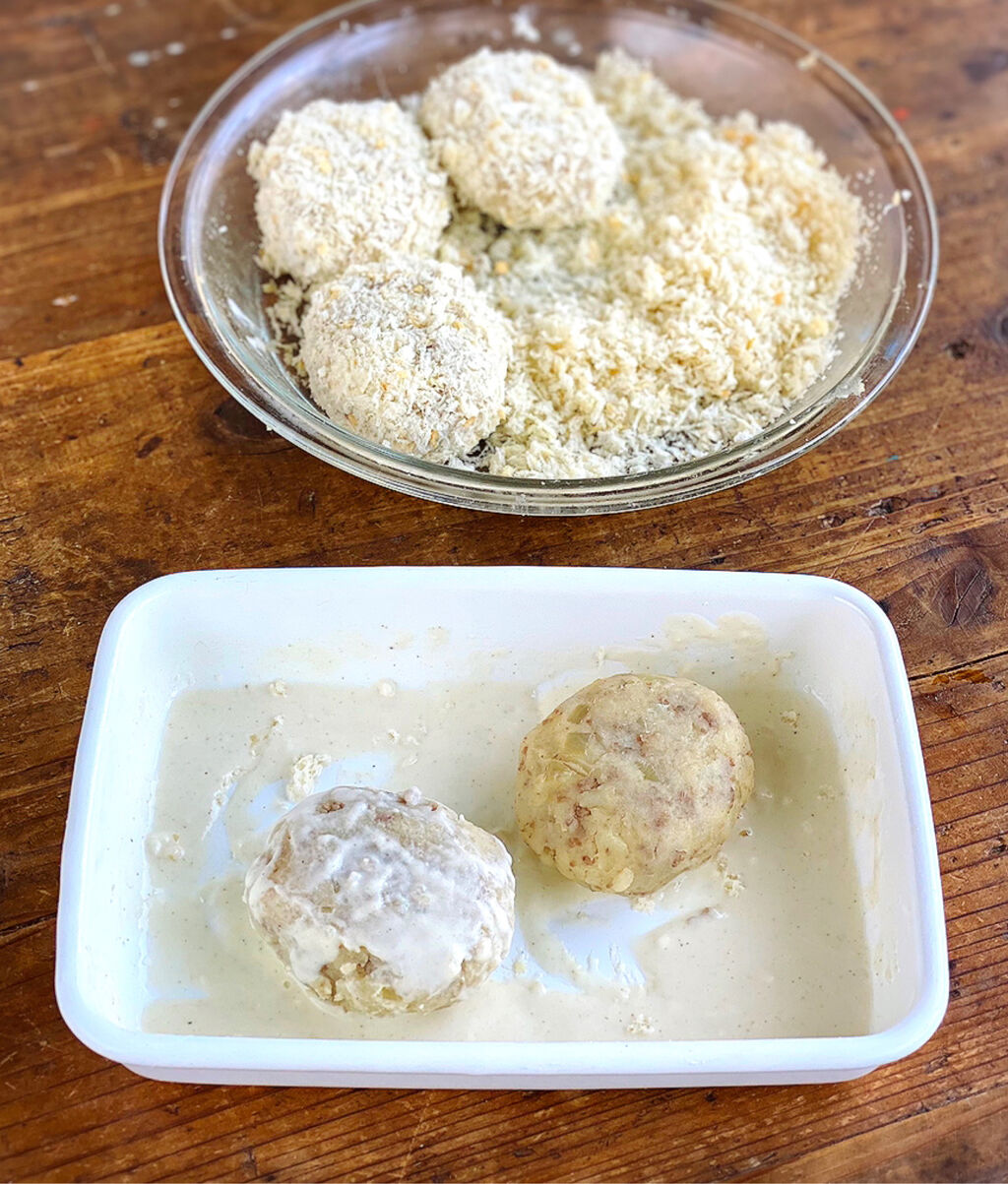 3.バットに☆を入れて混ぜ、2をからめてパン粉をまぶす。