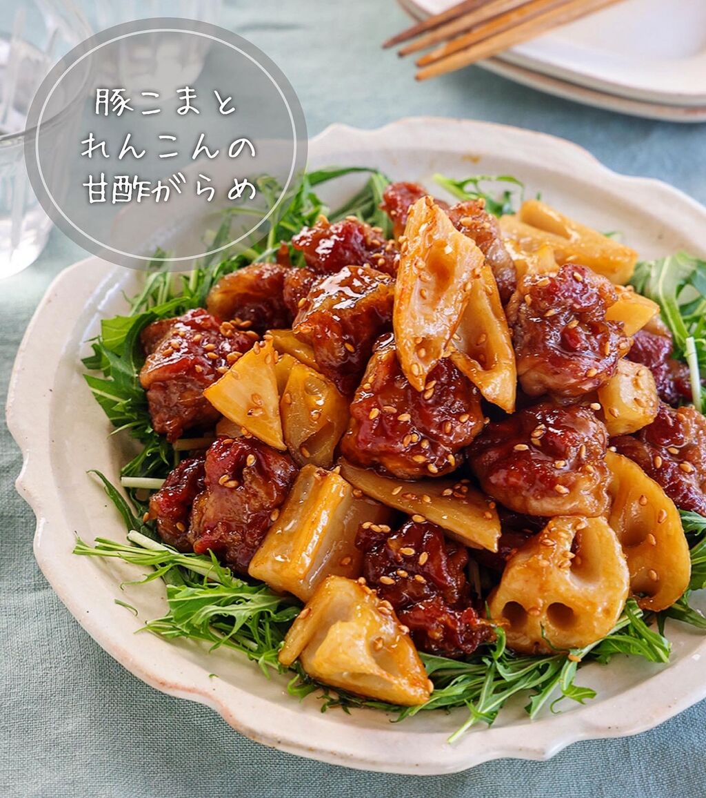 \ 豚こまとれんこんの甘酢がらめ /