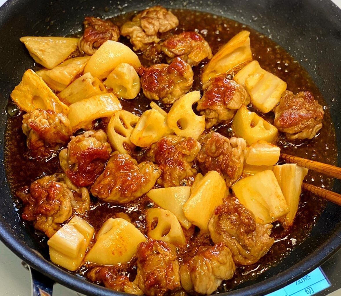 豚こまとれんこんの甘酢がらめ
