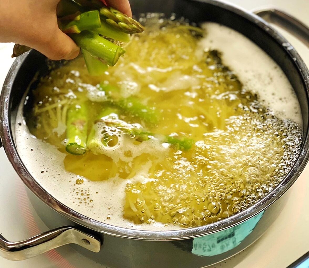 パスタと野菜を一緒に茹でたら
