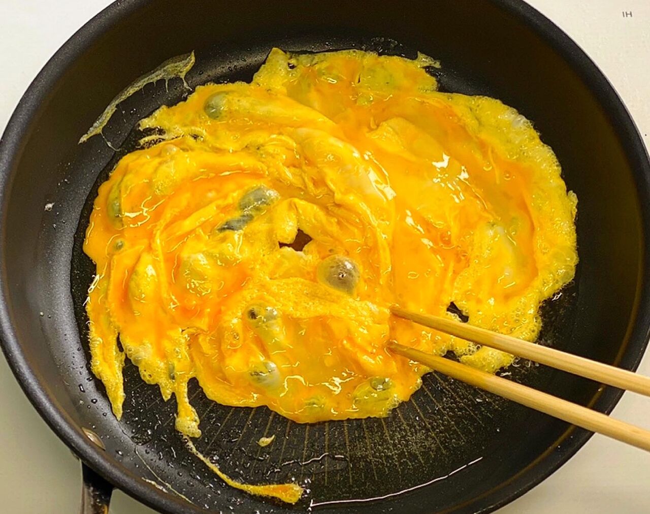 ♦︎卵は''フライパンと油をしっかり熱してから''入れて下さい♩まだ早いかな?と思うタイミングで取り出すといい感じのふわとろになります♩