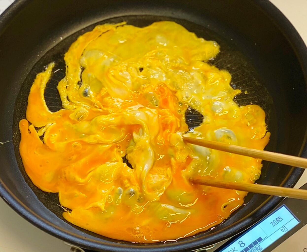 ♦︎卵は''フライパンと油をしっかり熱してから''入れて下さい♩まだ早いかな?と思うタイミングで取り出すといい感じのふわとろになります♩