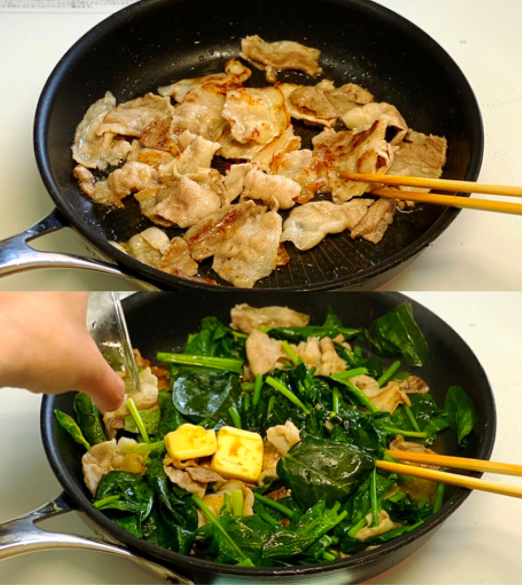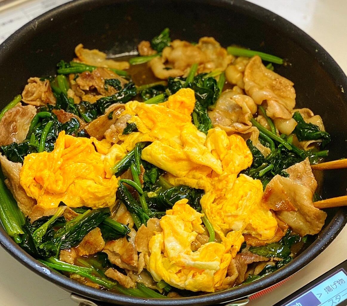 豚肉とほうれん草のとろ卵炒め