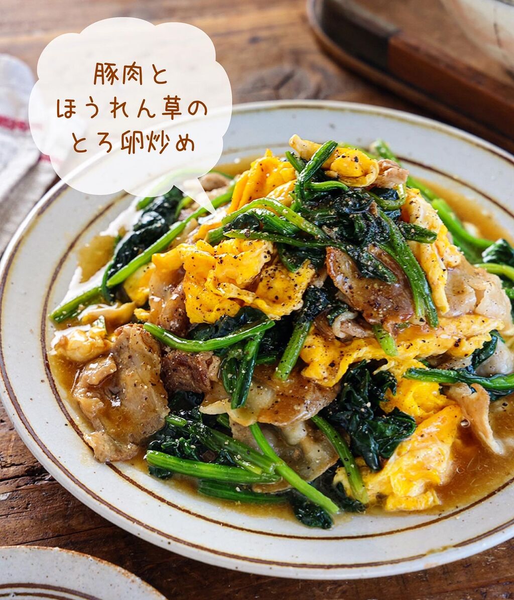 \ 豚肉とほうれん草のとろ卵炒め /