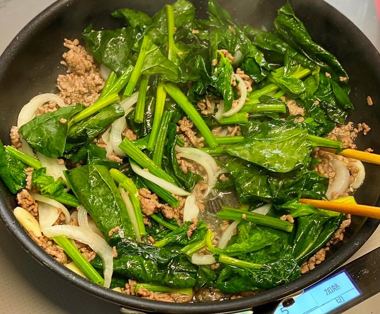 ひき肉とほうれん草の