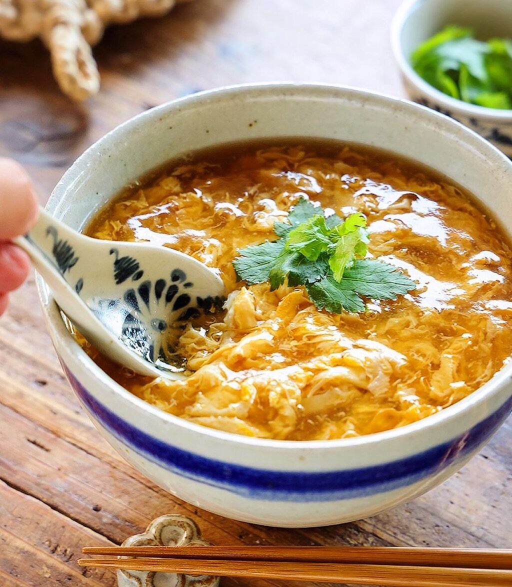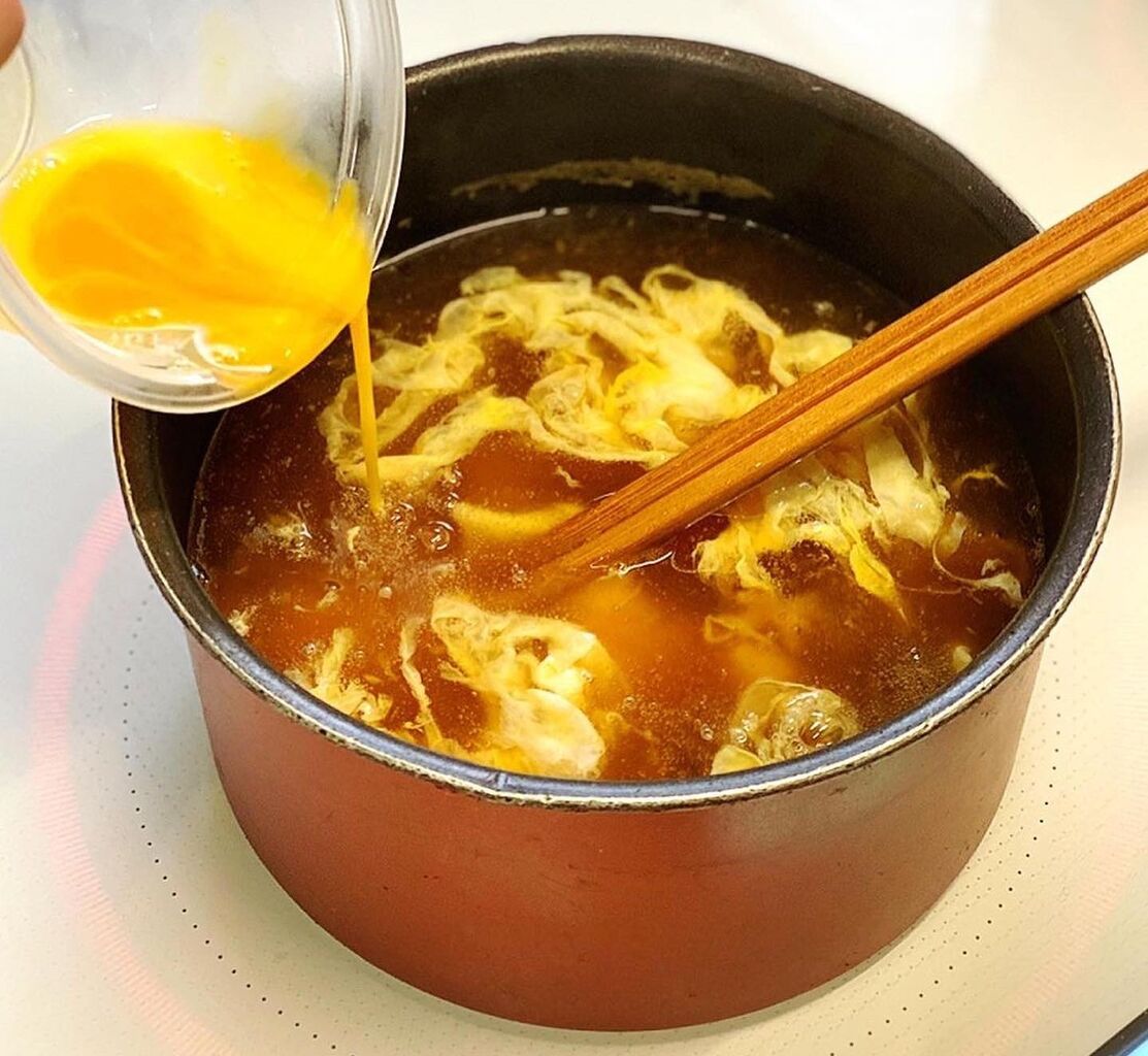 2.鍋に●を入れて中火にかけ、煮立ったら水溶き片栗粉を加えてとろみをつける。次に溶き卵を回し入れ、ふんわりしたら火を止める。