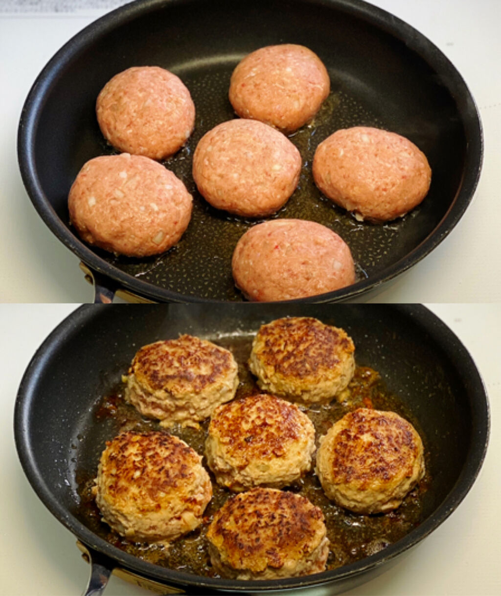 ♦︎たねは粘りが出るまでよく捏ね、なるべく表面がなめらかになるよう成形しておくと''割れ''を防ぐことができ、肉汁の流出を防げます♩