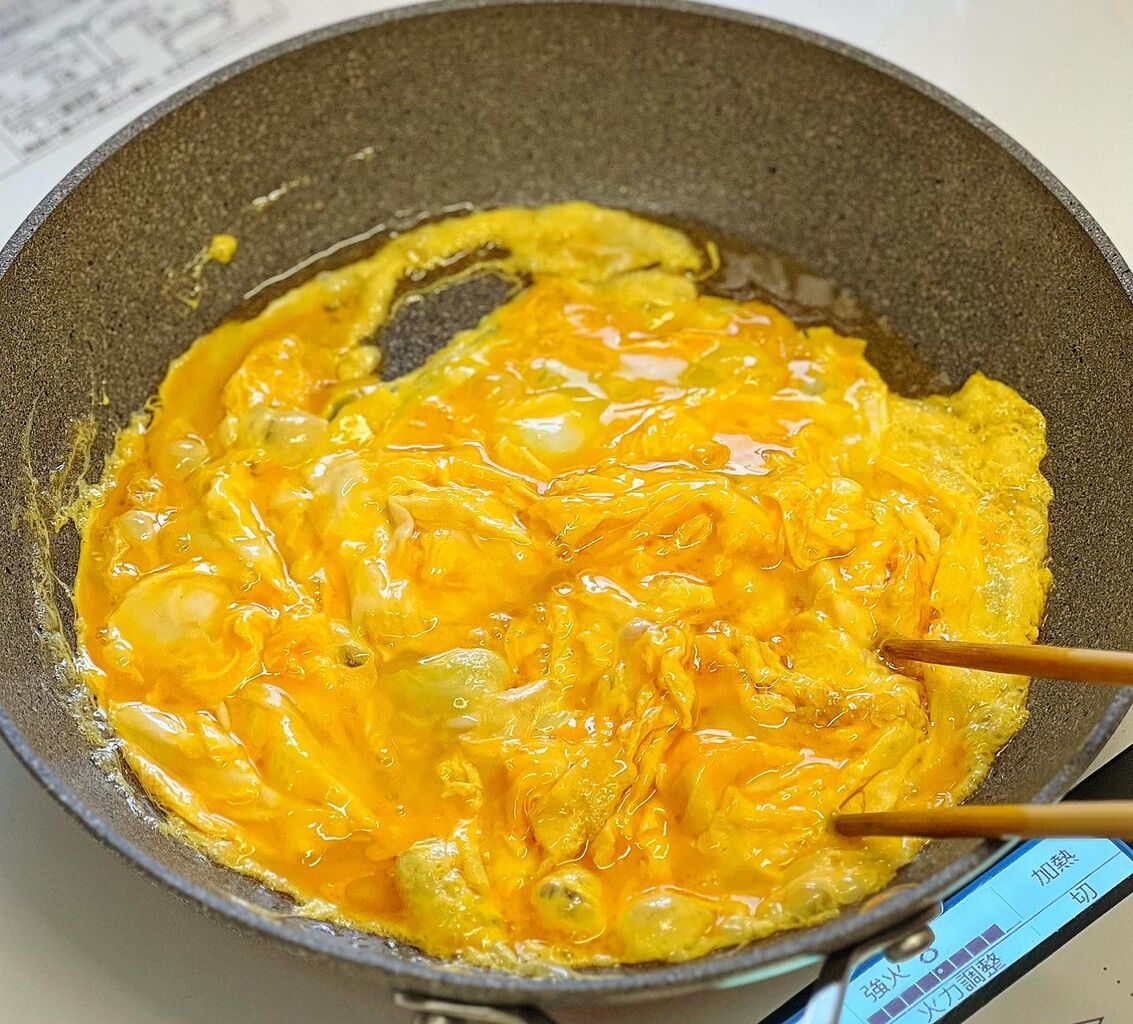 ♦︎卵は''フライパンと油をしっかり熱してから''入れて下さい!まだ早いかな?と思うタイミングで取り出すといい感じの半熟になります♩