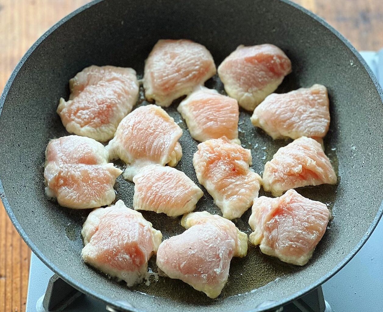 ♦︎薄力粉は鶏肉全体に薄くまぶしてください♩