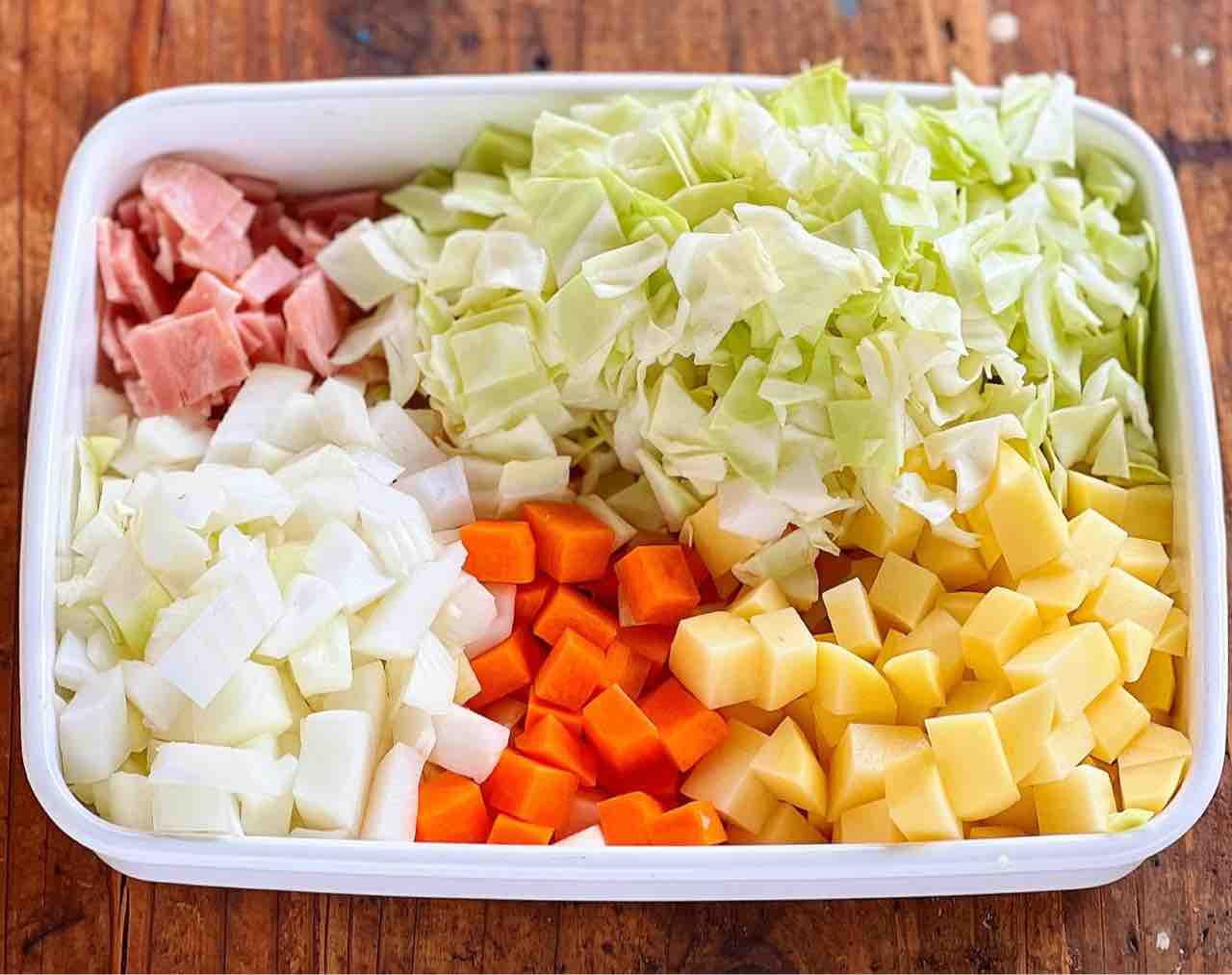 1.野菜とベーコンは1cm角に切る。