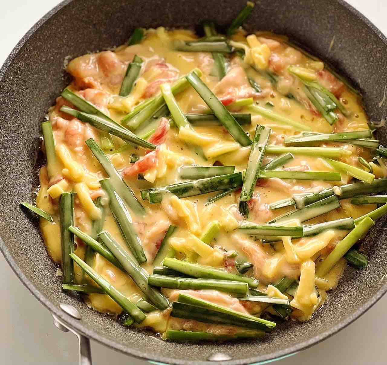 1.豚肉とニラは4cm長さに切る。ボウルに●を入れて混ぜ、豚肉、ニラ、チーズを加えて混ぜる。