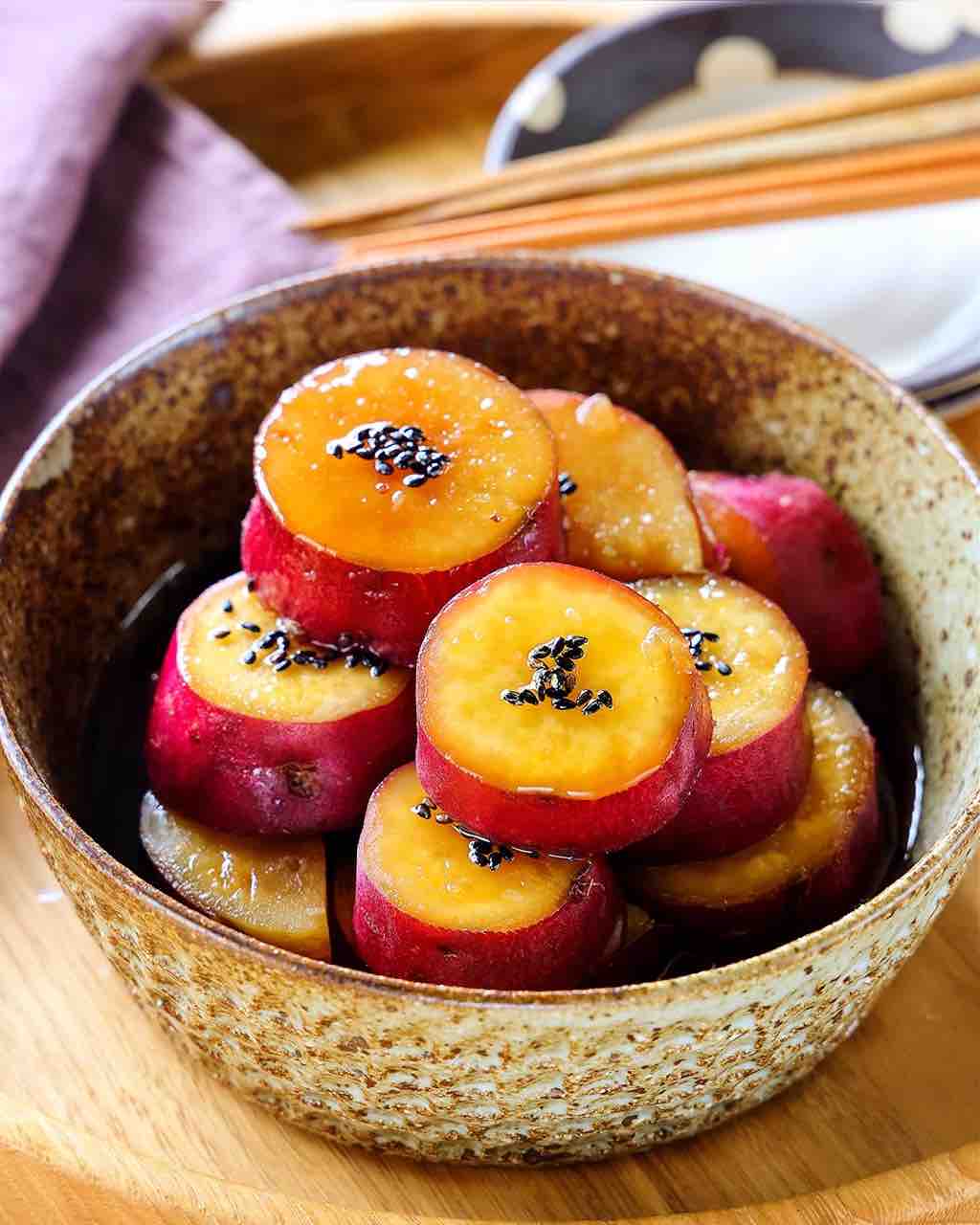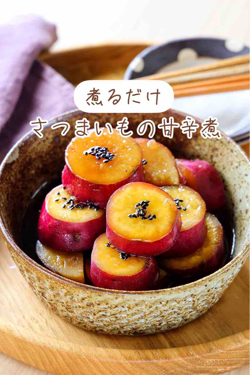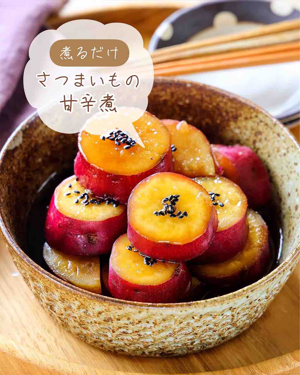 3.さつまいもがやわらかくなったら火を止め、バターを加えて余熱で溶かす。器に盛り、黒ごまをトッピングする。