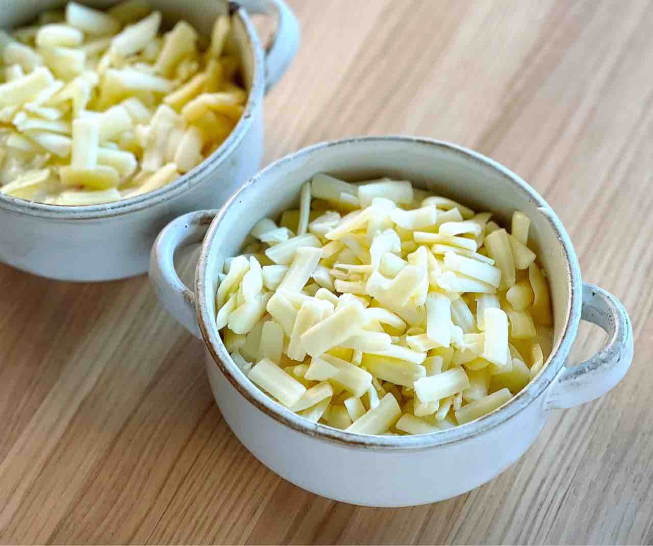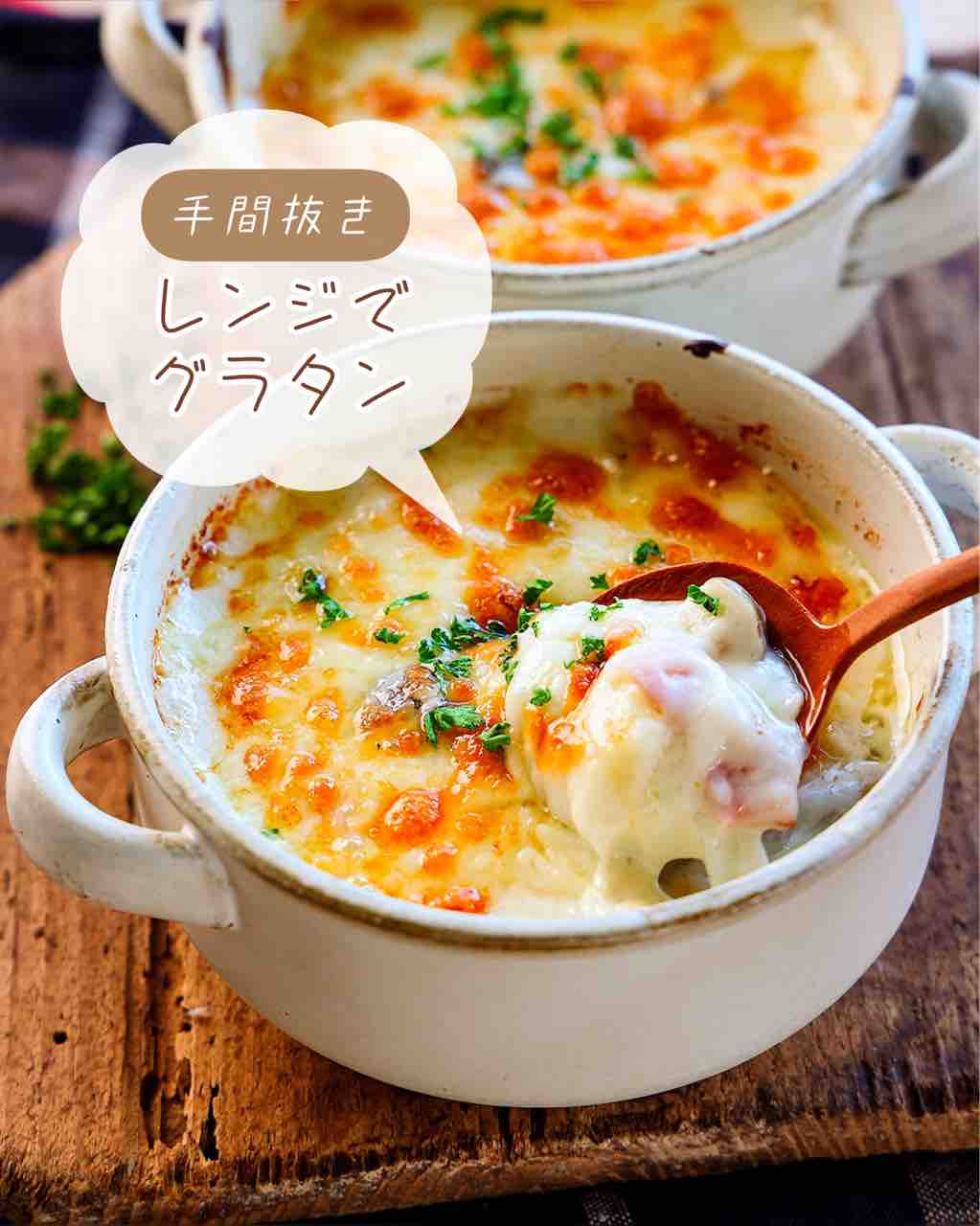 4.耐熱皿に入れてチーズをかけ、トースターで焼き色がつくまで焼き、パセリを振る。