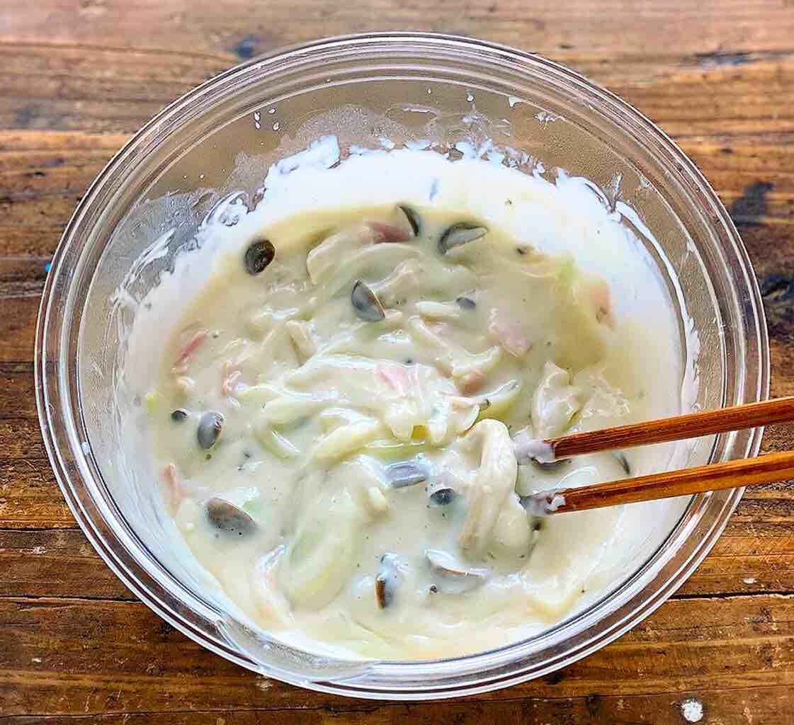 ♦︎はじめは牛乳を少しだけ加え、''完全にダマがなくなるまで(ペースト状になるまで)''よく混ぜて下さい☆ここが最も大切なポイントです!